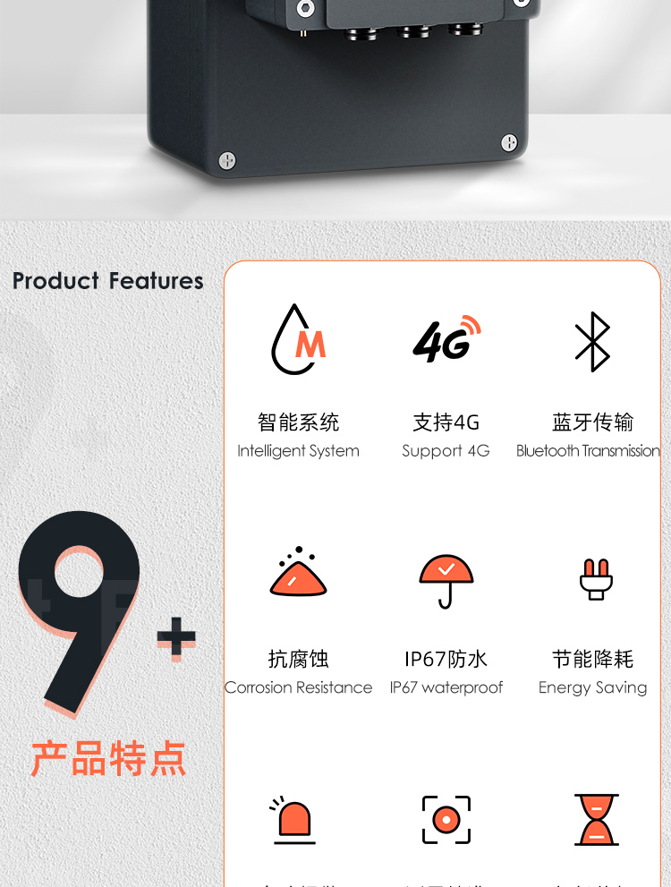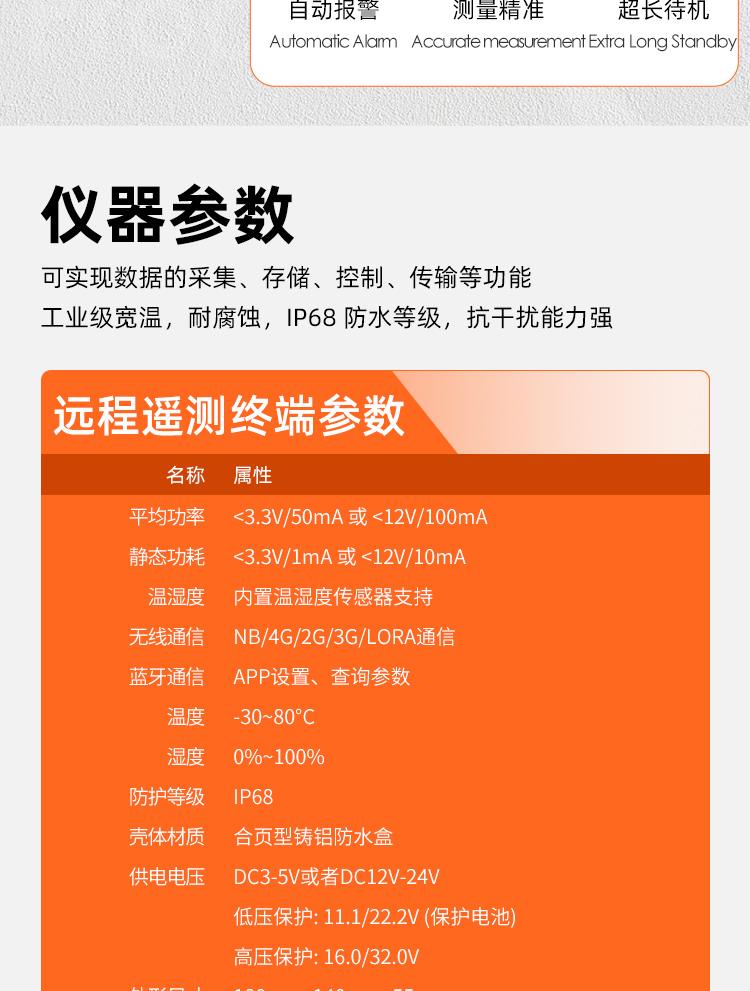 工業(yè)級(jí)寬溫,耐腐蝕,IP68 防水等級(jí),抗干擾能力強(qiáng),適用于各種惡劣的環(huán)境,如污水窨井。